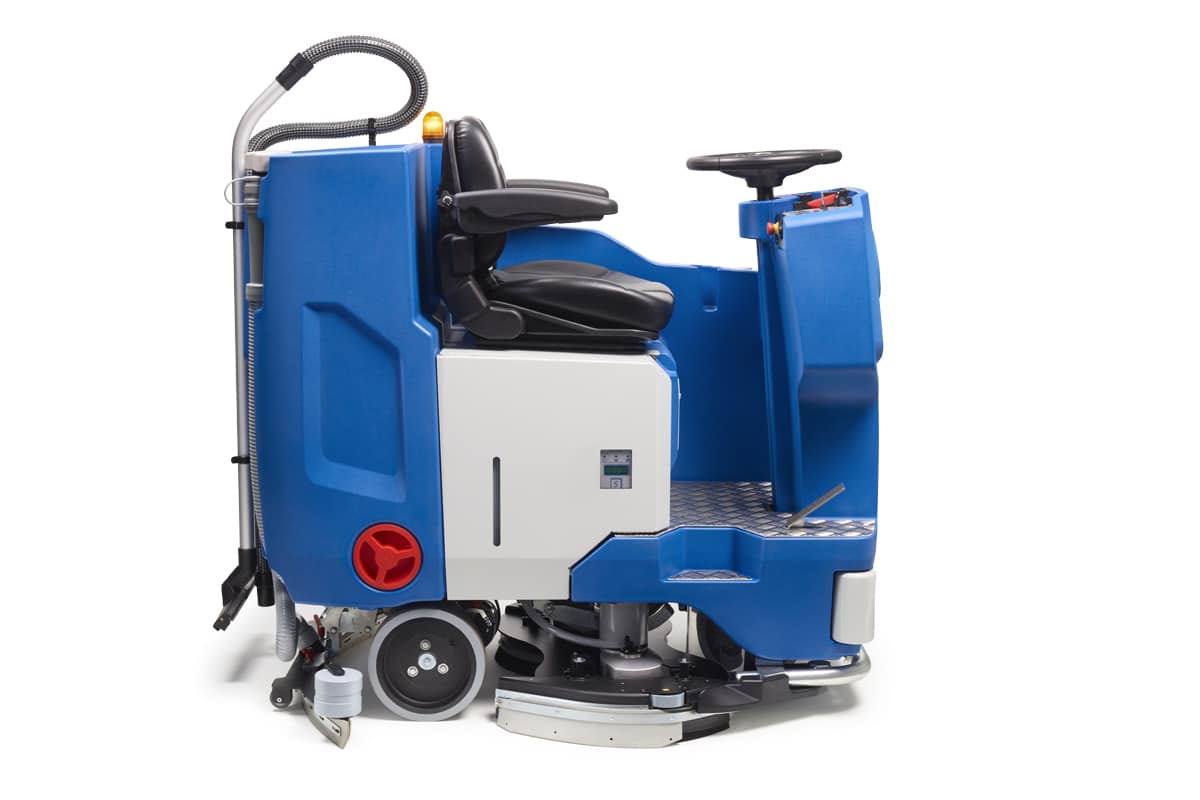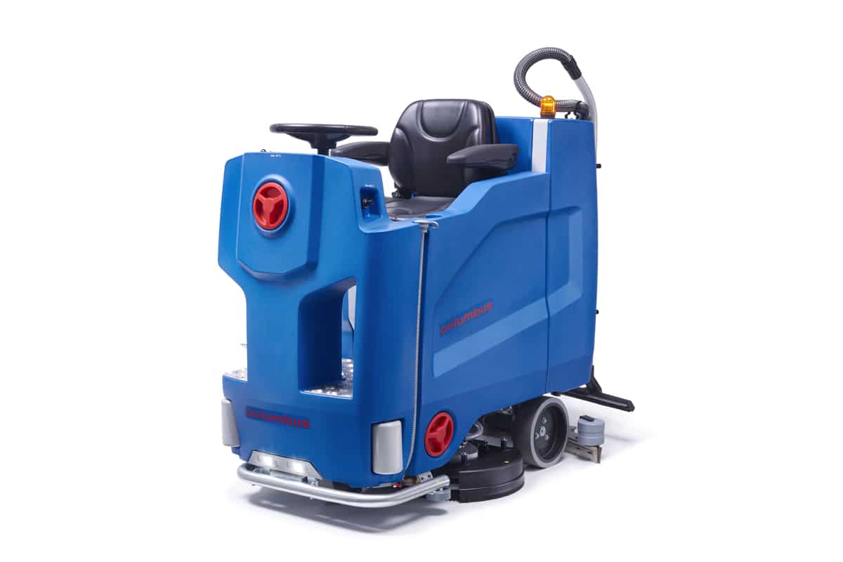 Compact ride-on sweeper, ideal for use in densely furnished areas.