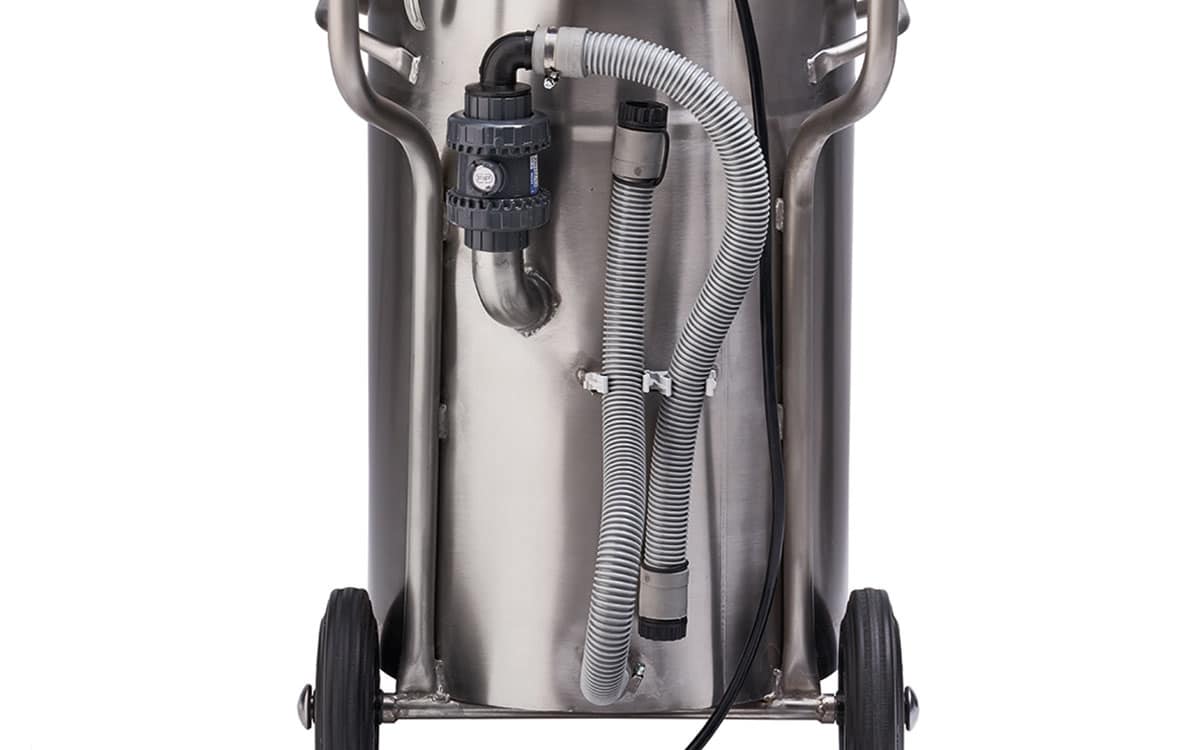 This powerful industrial wet vacuum cleaner made of stainless steel is equipped with two powerful and individually switched bypass motors. It is the ideal solution for all applications where liquids have to be extracted and pumped out simultaneously. Controlled emptying of the 80-litre container is possible at any time thanks to the integrated drain hose. It can also be integrated ideally into an emptying system as an intermediate station.