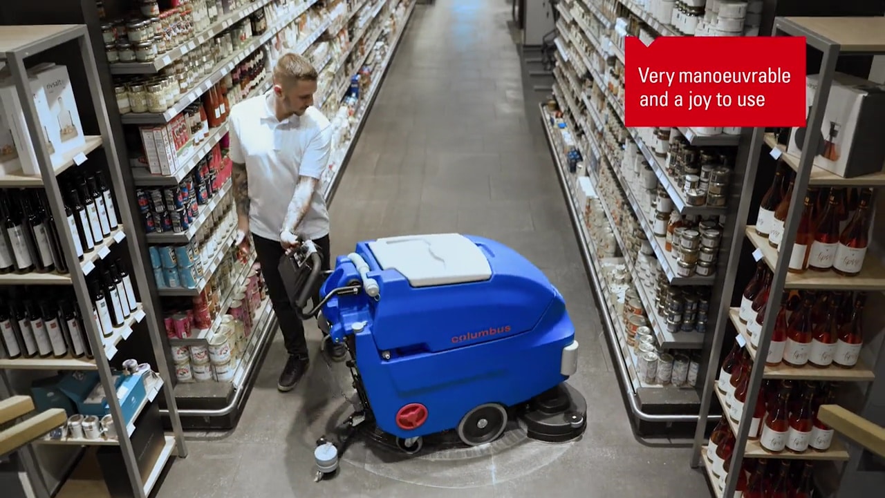 Equipped with a working width of 55 cm, our battery-powered 60-litre machines are typical columbus examples. Real hard workers that dispense with gimmicks and instead offer everything that is really needed: first-class cleaning results, maximum reliability, playful handling and top value for money.