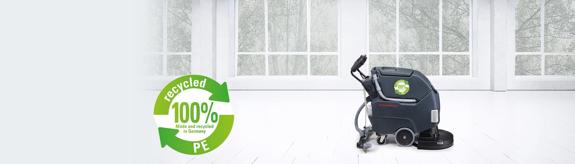 Con la RA 55|BM 40 CYCLE, estamos estableciendo nuevos estándares en términos de sostenibilidad. El depósito de la fregadora de hombre acompañante está fabricado con plástico 100% reciclado, un punto de venta único en el sector de las máquinas de 40 a 60 litros. Sólo utilizamos material de desecho sin mezclar procedente de la prensa para garantizar el mismo nivel de calidad que nuestros depósitos estándar; no se vuelve a colorear el plástico, sino que es 100% sostenible. Producido y reciclado en Alemania.
