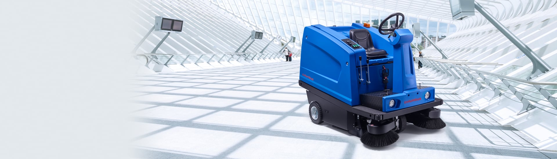 With a working width of 1450 mm and equipped with two side brushes as standard, this compact, robust, battery-powered ride-on sweeper ensures consistently clean sweeping results on medium-sized indoor and outdoor areas. The electric filter shaker enables consistently efficient cleaning of the 6 m² filter surface. With its robust steel construction, the AKS 85|BM 120 masters all heavy-duty applications.