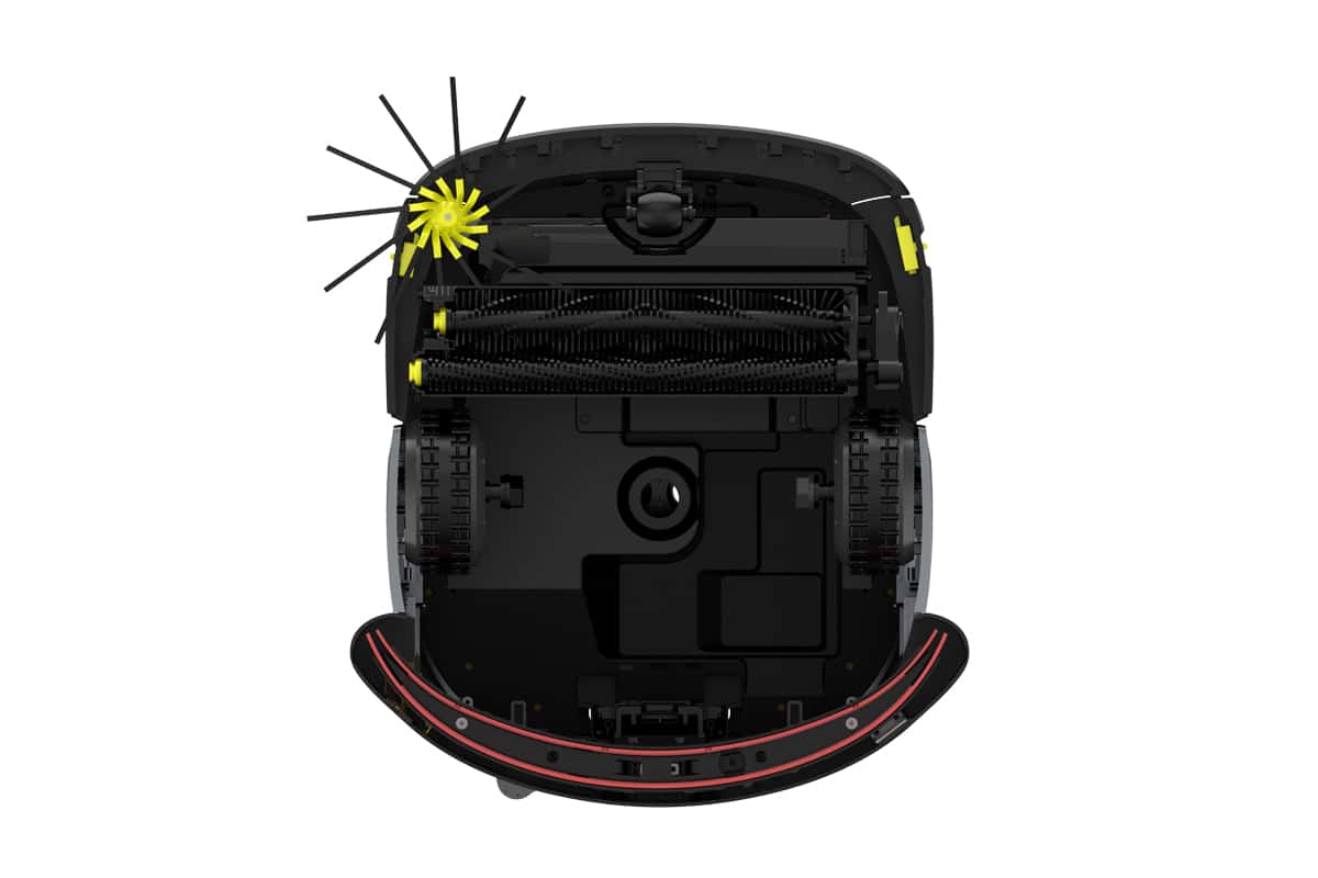 Seitenbürste und hochpräzise Sensorik ermöglichen Seitenreinigung komplett bis an den Rand.
