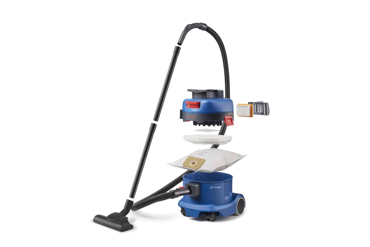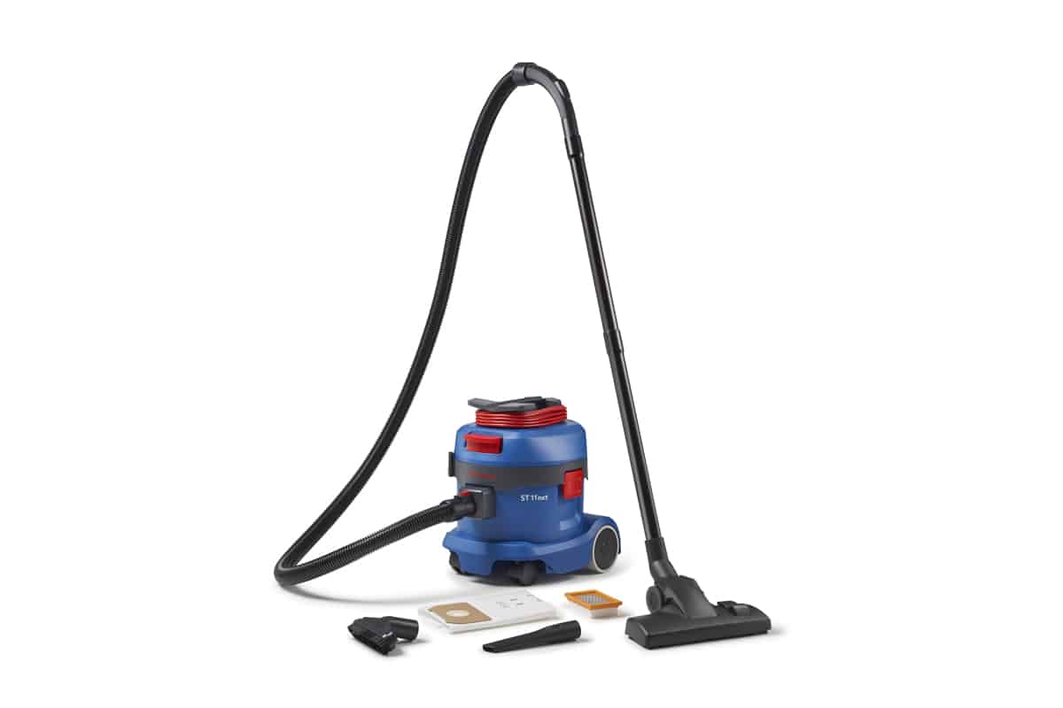 Das Allroundtalent mit umfangreichem Zubehör für jede Anwendung und großem 11 l Vliesbeutel für den professionellen Einsatz. Stabil und wendig: das neue Design mit tiefem Schwerpunkt und gummierten Laufrollen hinten sorgen für sicheren Stand und spurstabilen Nachlauf. Angenehm leise mit nur 57 dB(A), für den Einsatz in geräuschsensiblen Bereichen. Steckbares Kabel in Signalfarbe mit Zugentlastung für maximale Betriebssicherheit.